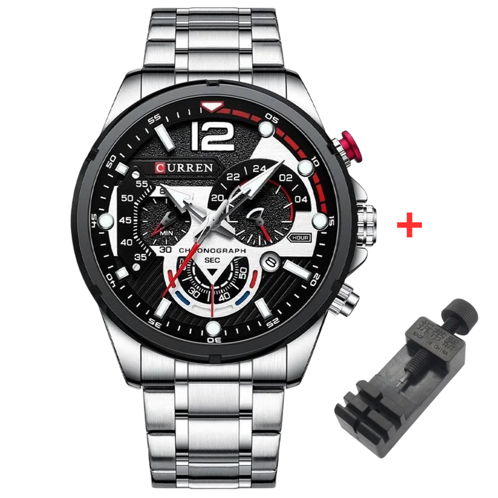 Чоловічий кварцовий годинник Curren 8395 Silver-Black з календарем та секундоміром